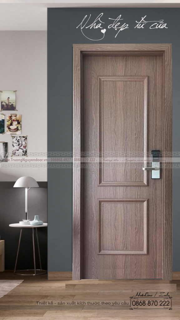 Là mẫu cửa phổ biến với các đường chỉ nổi tạo thành hình vuông, chữ nhật đối xứng, mang lại vẻ đẹp thanh lịch, nhẹ nhàng.