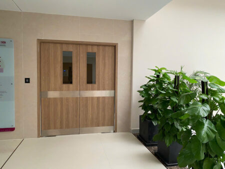 - Vệ sinh dễ dàng, phù hợp môi trường bệnh viện: Bề mặt cửa nhẵn mịn, không bám bụi, dễ lau chùi giúp duy trì sự sạch sẽ và hạn chế vi khuẩn phát triển.